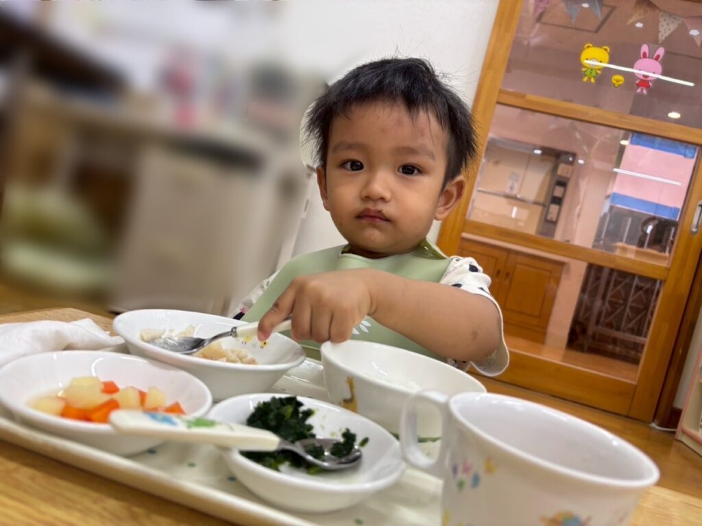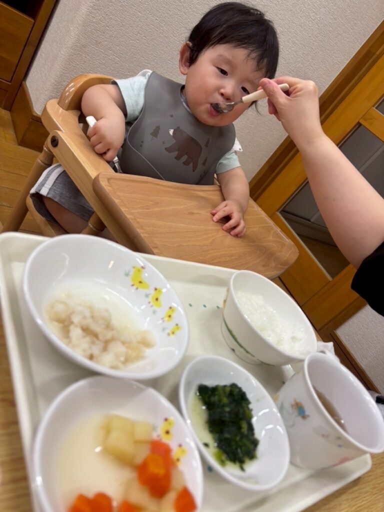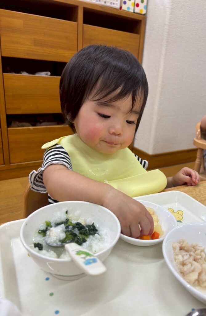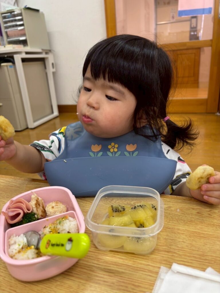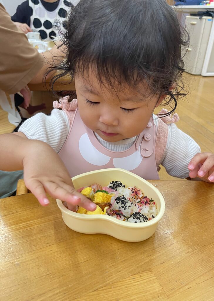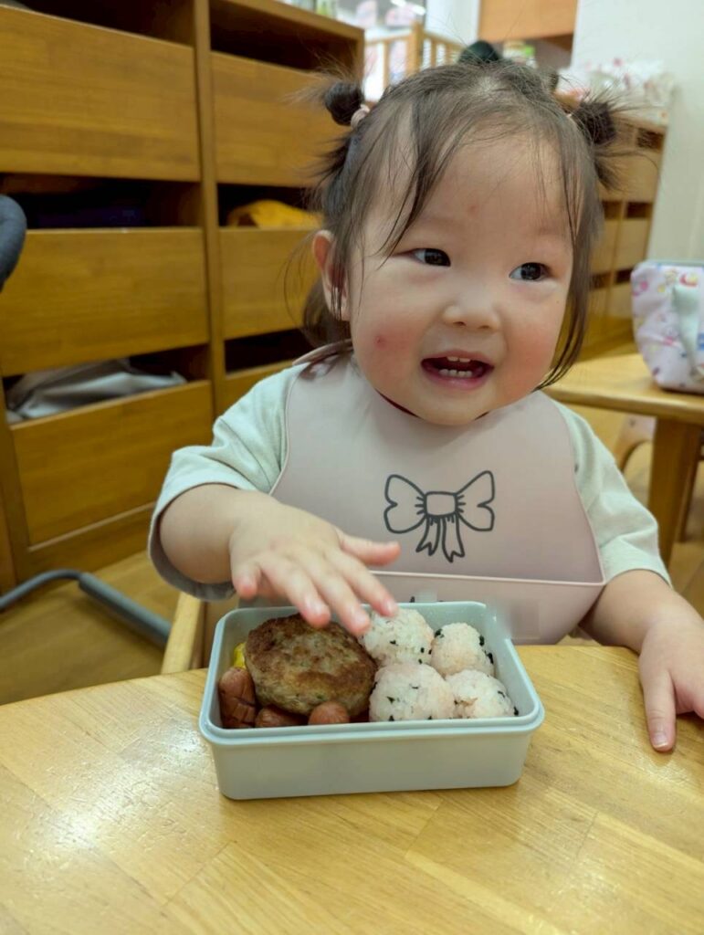 保育園に戻ると待ちに待ったお弁当と離乳食を食べました!😋🍱