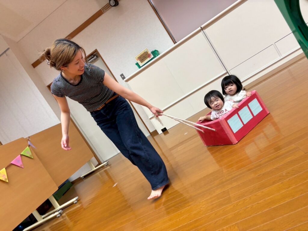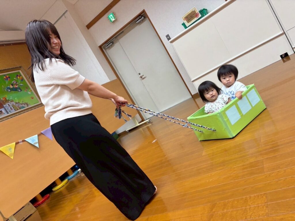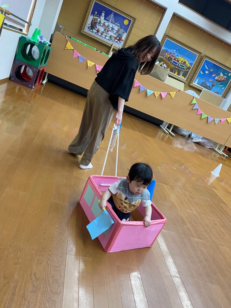 箱に入るのが大好きなもも組さん♥️お友だちと一緒に乗ってとっても喜んでいました😊