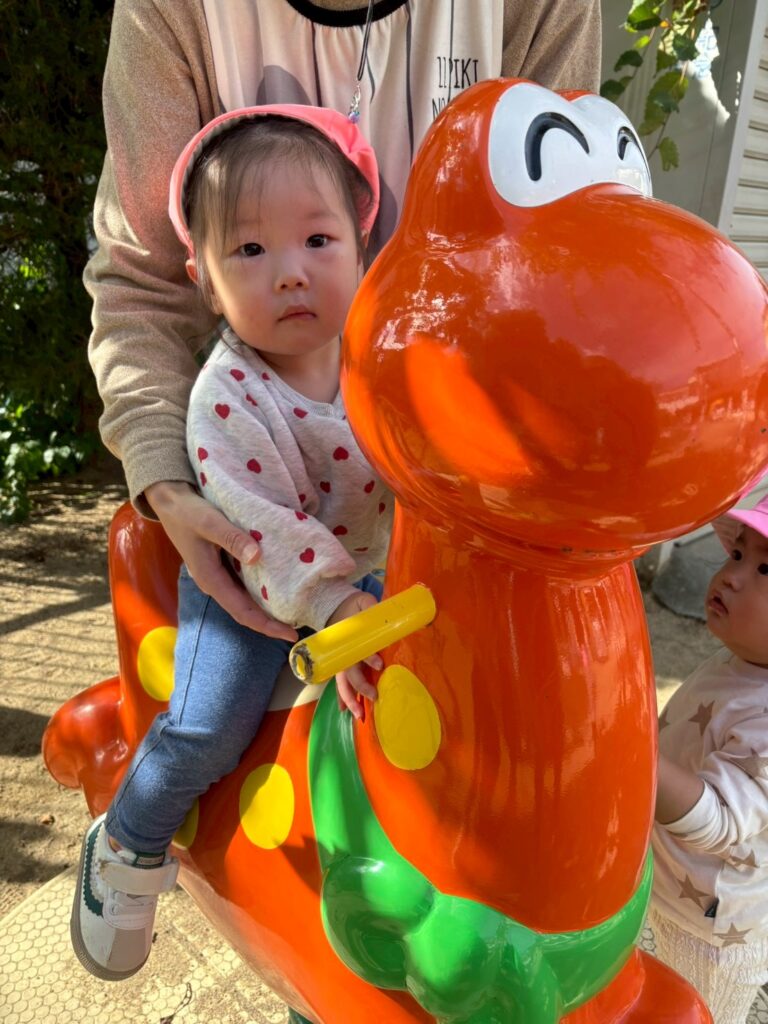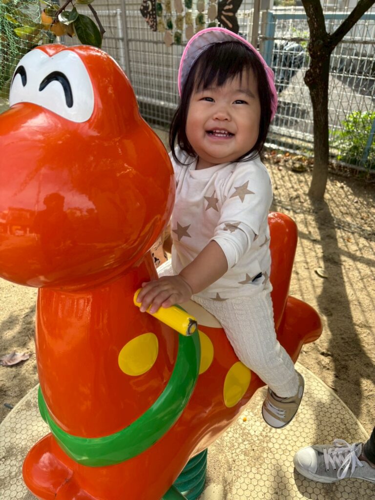 遊具からばぁ!と可愛く顔を見せてくれたり🤭遊具のヨッシーくんにも初めて乗ってみました!💕