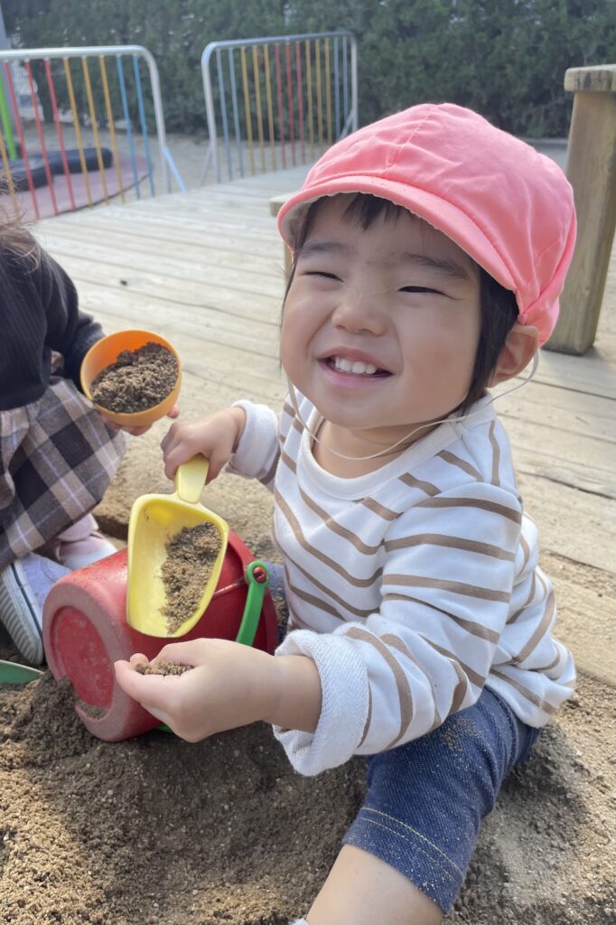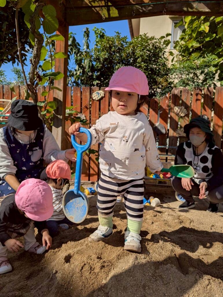 みんなスコップを持って土を掘ってみたり、型抜きをして楽しんでいましたよ🎶