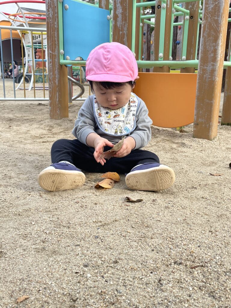 その他にも落ち葉を見つけて触ってみたり…🍂