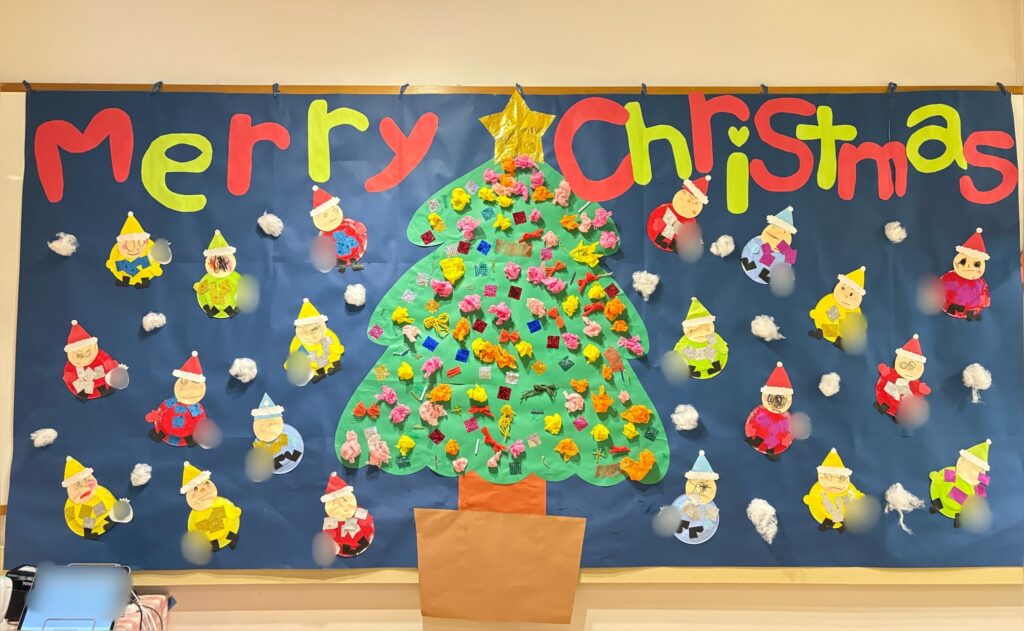紙皿を使ってサンタを作ったり、いろいろな材料を貼ってツリーを作ったり…🎅🎄
