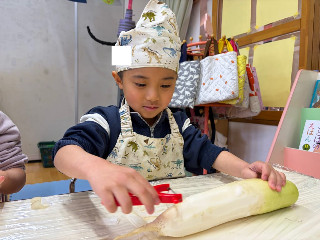 皮むきを楽しみにしていた子どもたち👦🏻👧🏻