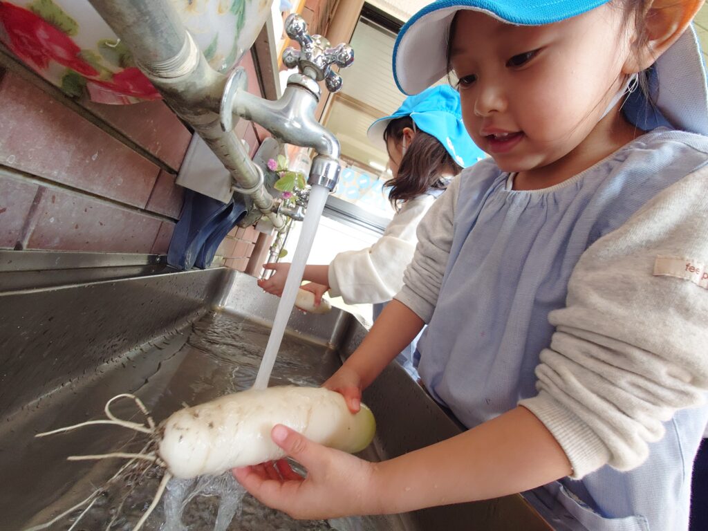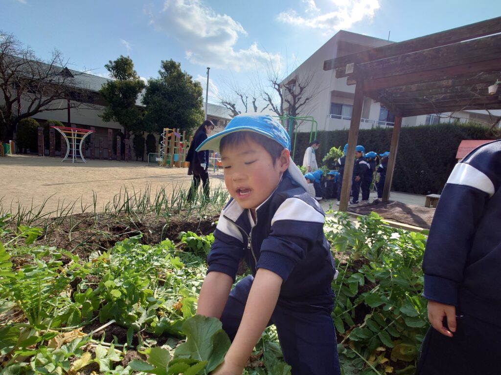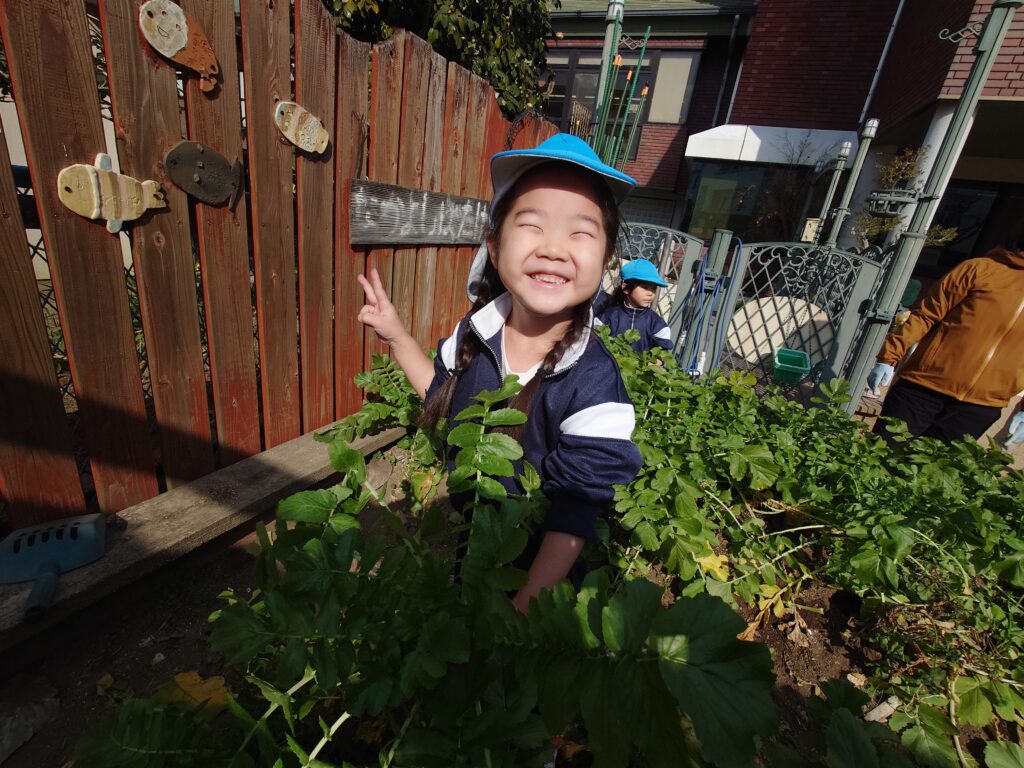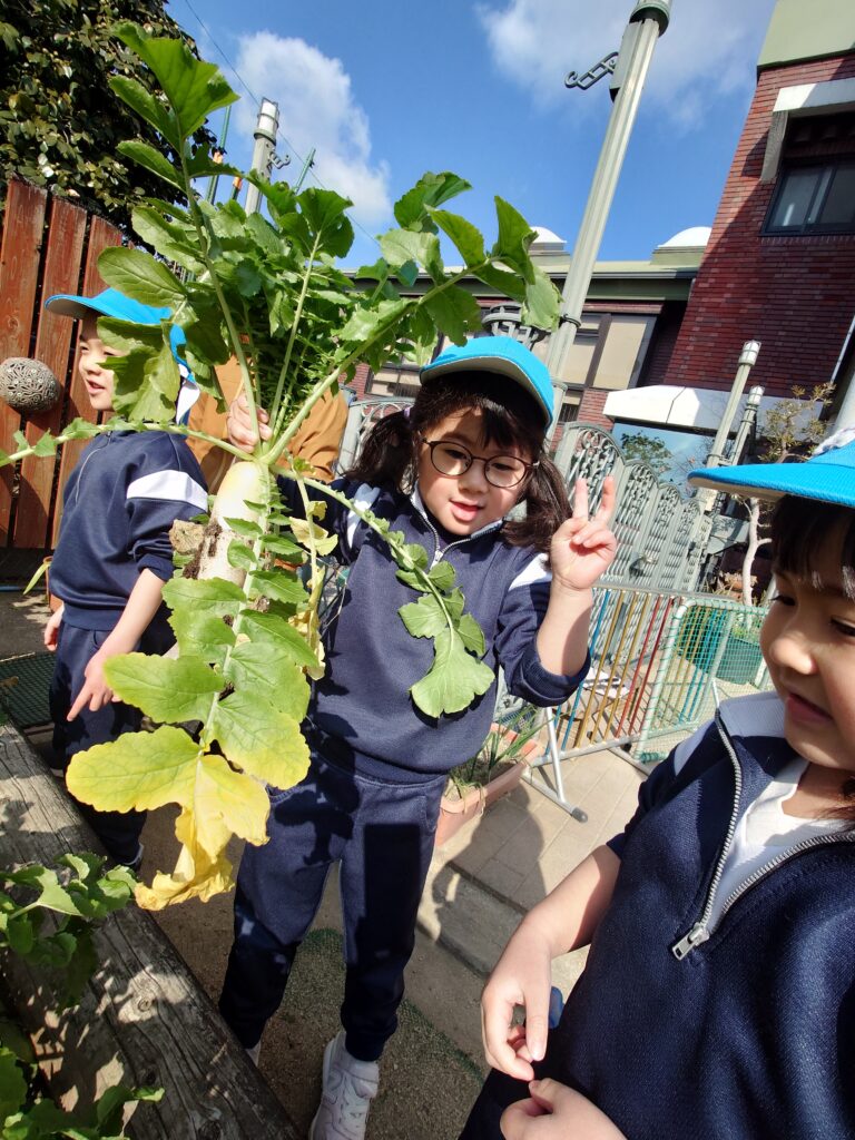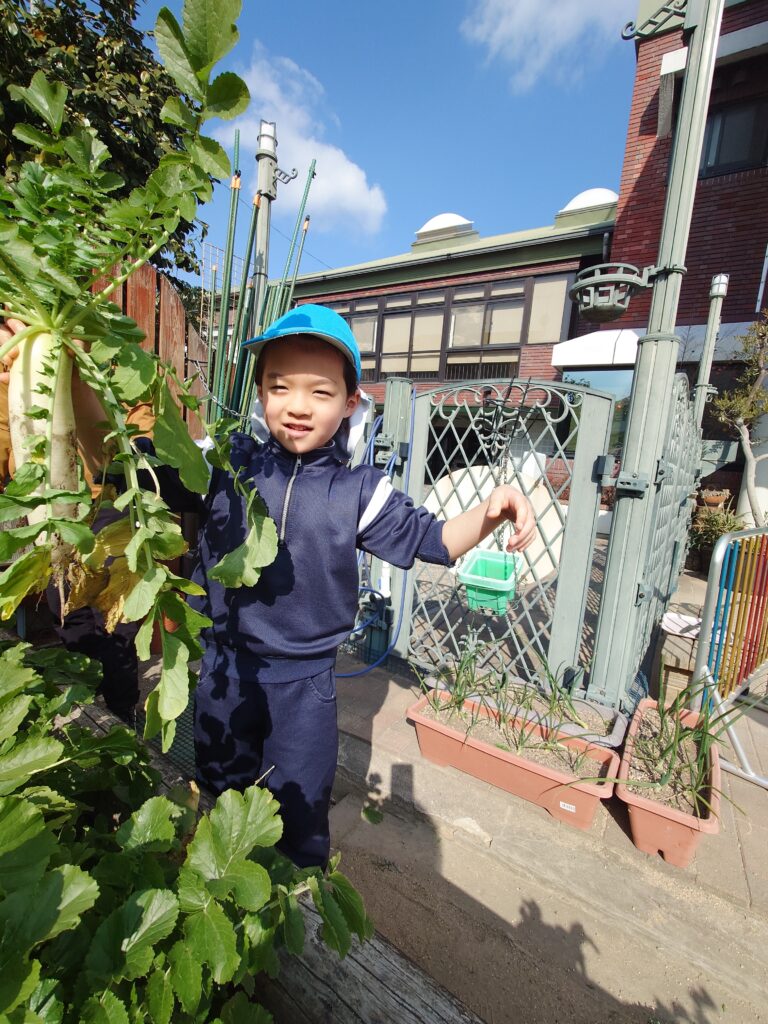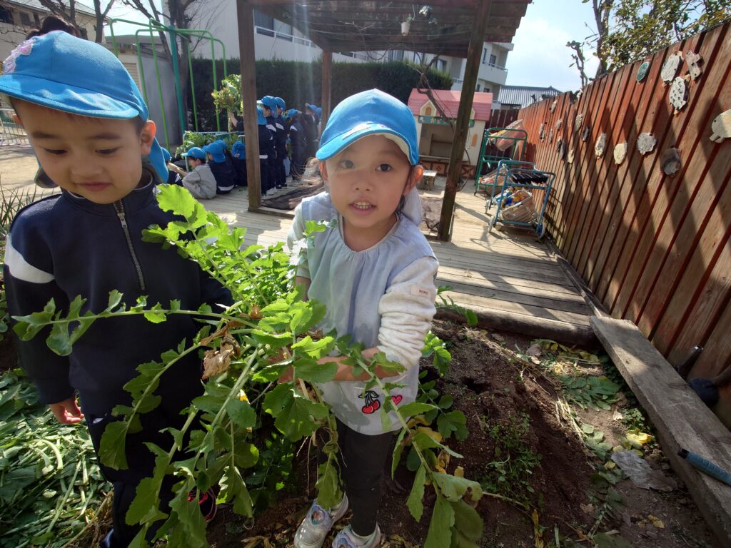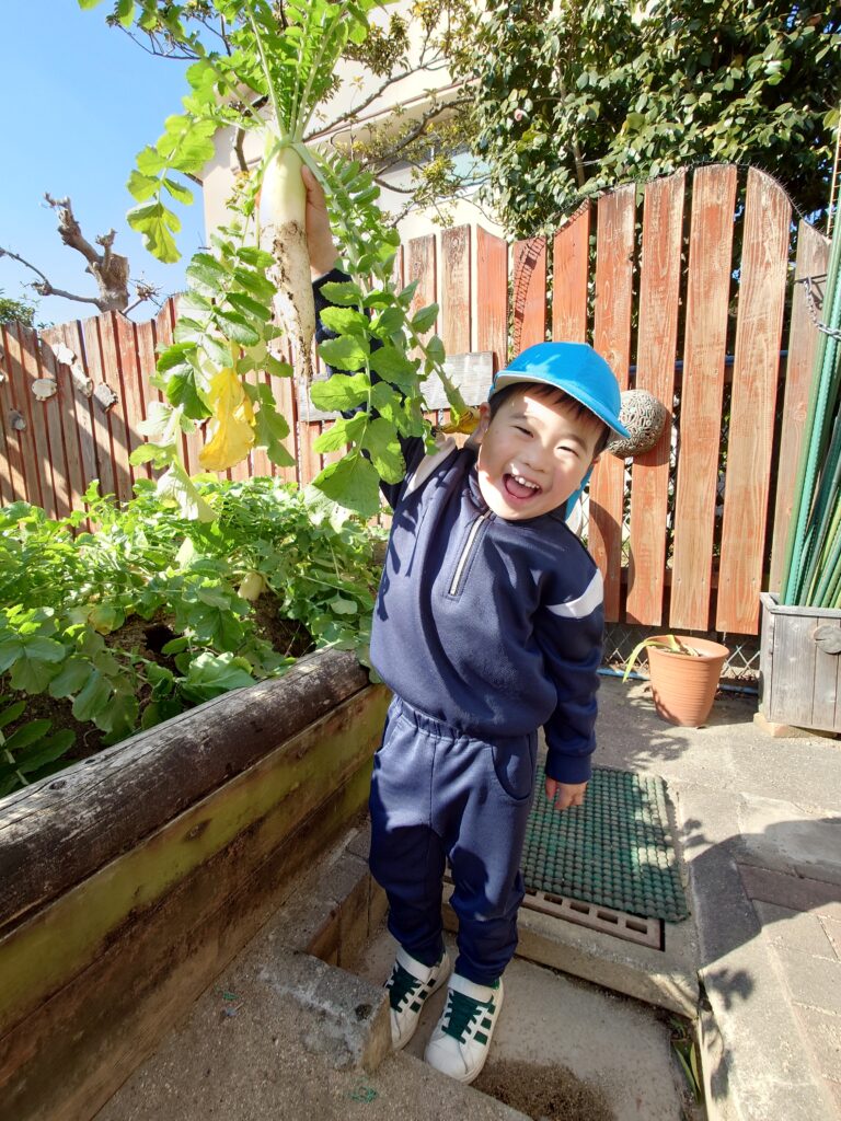また、2月3日(月)は、保育園の園庭にある畑の大根収穫に参加させてもらいました✌