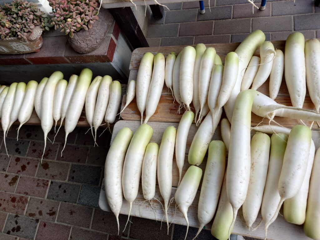 収穫したばかりの大根を冷たかったけれど、水で洗いました✌