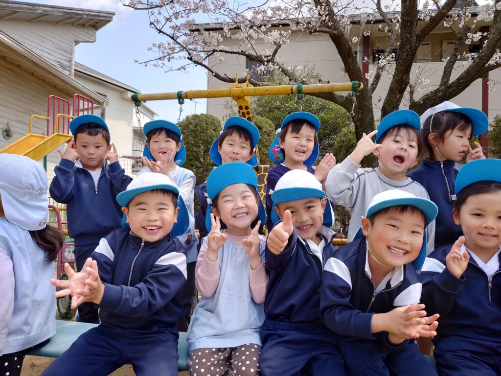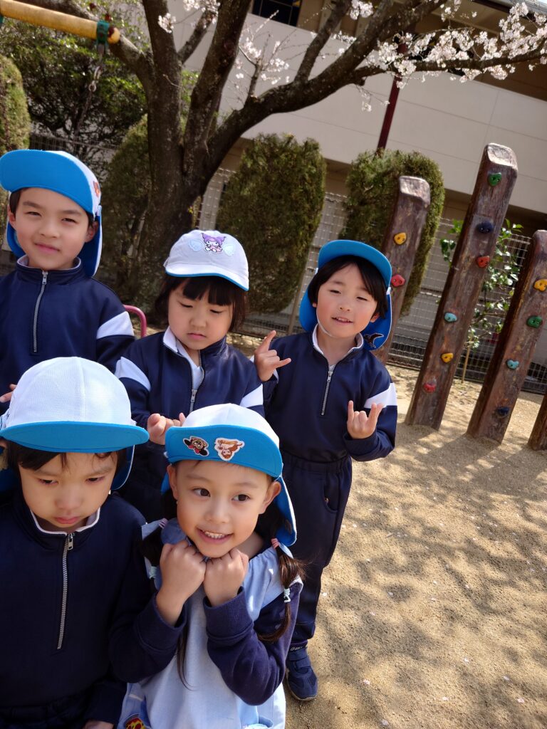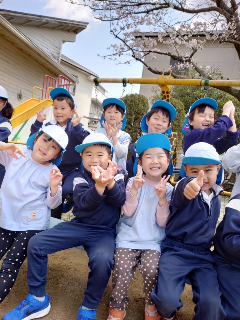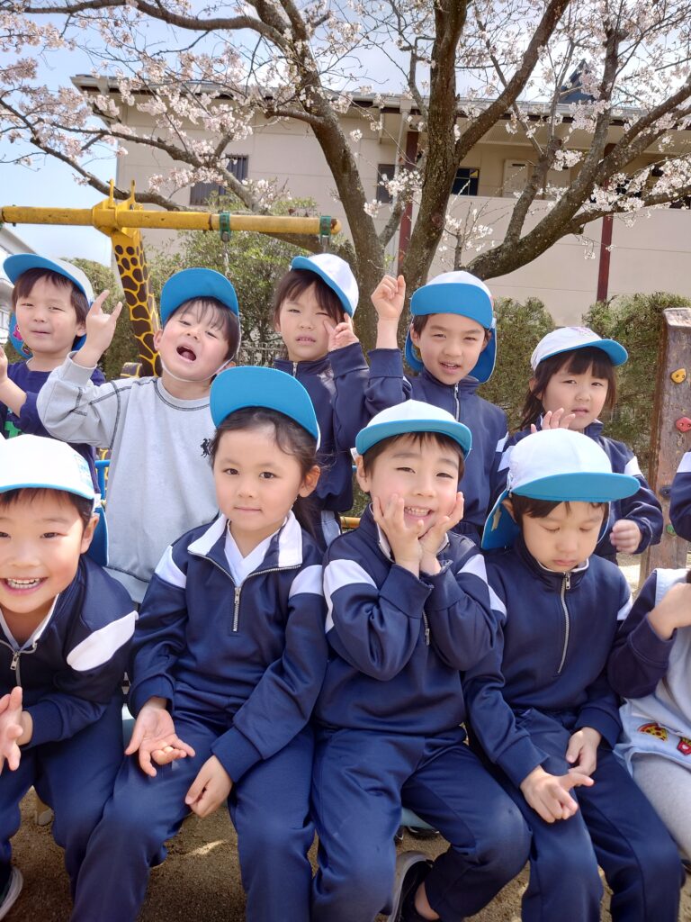 今日は園庭の桜が満開で、まるで子どもたちの進級を祝ってくれているかのように咲いていたので、みんなで記念写真を撮りましたよ👦🌸👧
