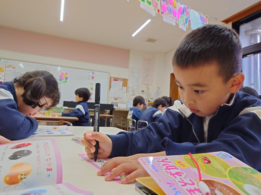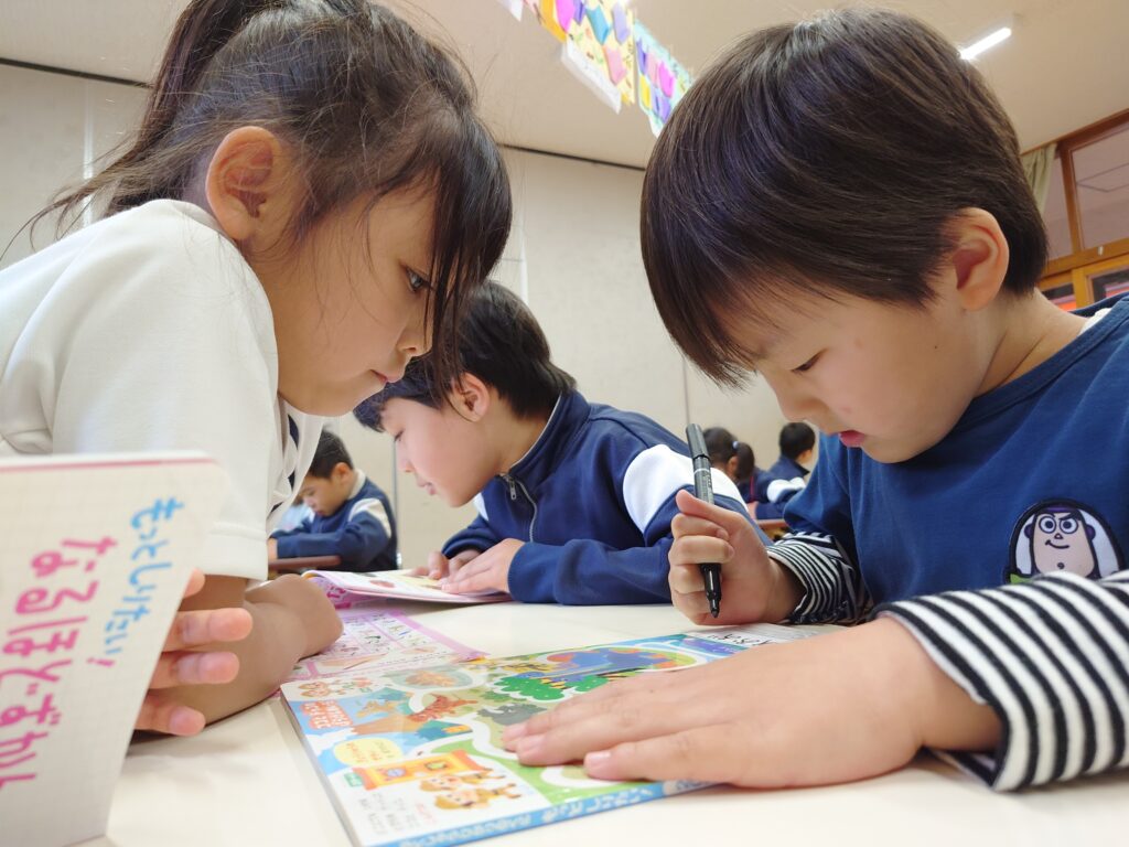 保育室では、月刊絵本やマイ図鑑にクラスと名前を書きました⭐️ ひらがなにも興味を持って読む姿も見られるようになりました✨
