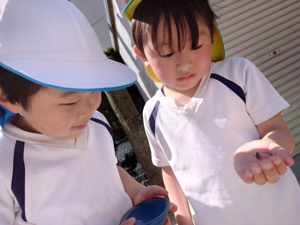 また、園庭の桜の木の近くで元気に遊ぶ姿が見られます。🐞🐜🦗🪲🐛 また、給食後は新しい当番活動も増えてチームで協力して楽しく取り組めています😊 今年度も子どもたちと笑顔がいっぱい⭐️楽しい毎日を過ごしていきたいと思います。よろしくお願いいたします🌸
